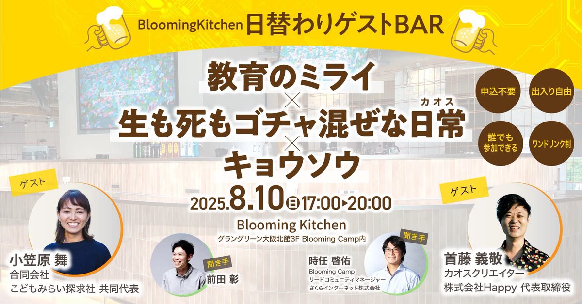 日替わりゲストBAR「教育のミライ×生も死もゴチャ混ぜな日常(カオス)×キョウソウ」@大阪|Blooming Camp
